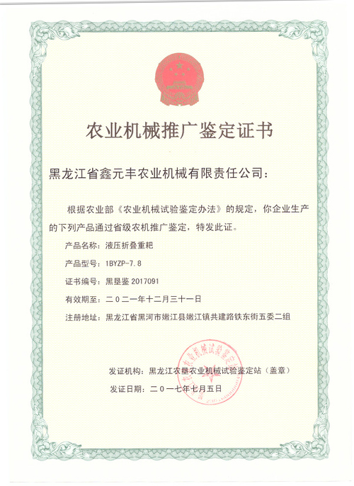 資質(zhì)榮譽(yù) 1BZ-4.0偏置重耙推廣證書(shū) 1BYZP-7.8液壓折疊推廣證書(shū) 1BYQP-8.5偏置液壓折疊輕耙推廣證書(shū) 共9條記錄 當(dāng)前為第2頁(yè)/共9頁(yè)上一頁(yè)12下一頁(yè)
